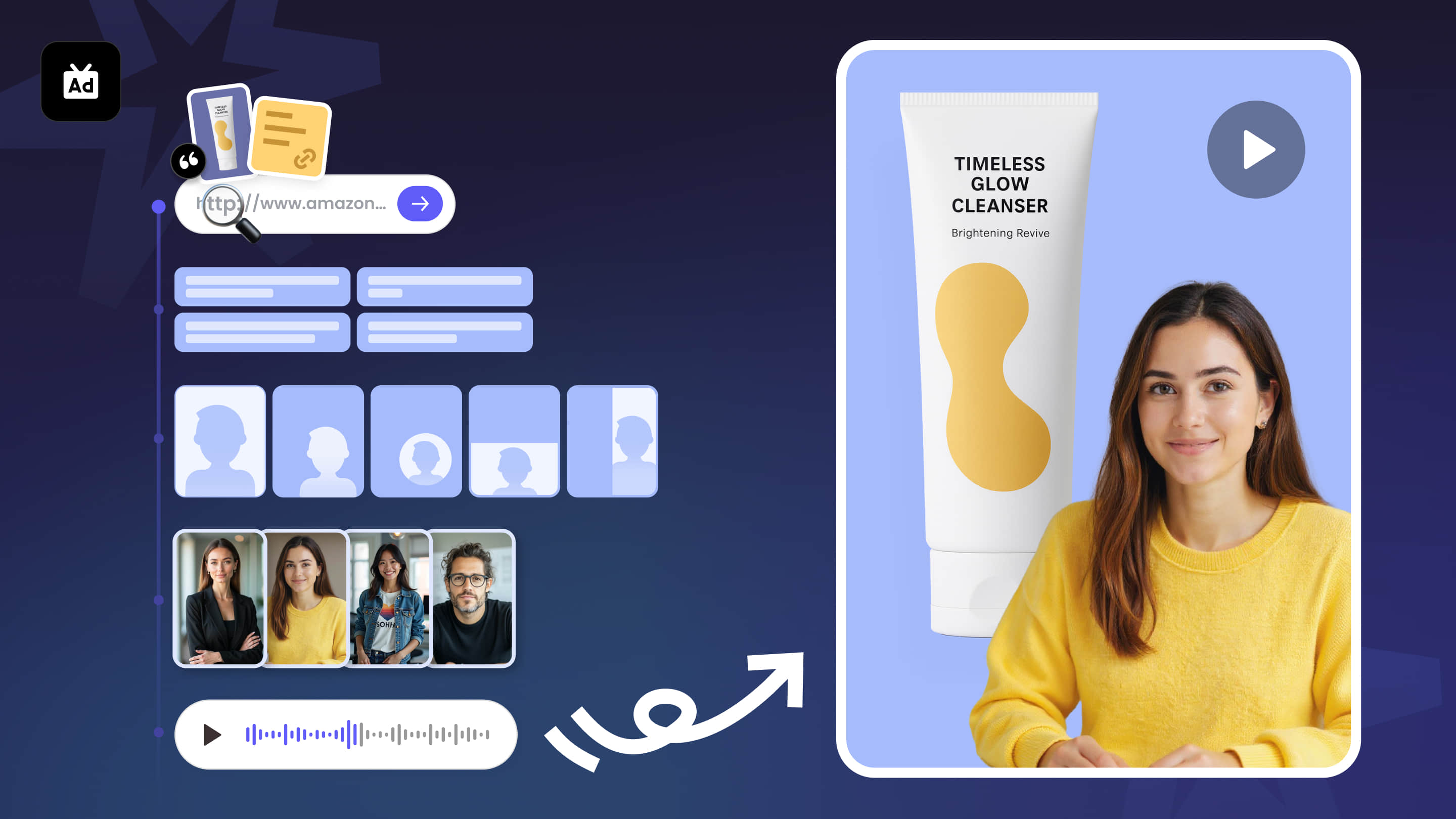 几秒钟内,你就能找到能完美传达你信息的AI角色和声音。添加你的文本,或者使用AI精心打造理想的信息,然后生成你的视频。